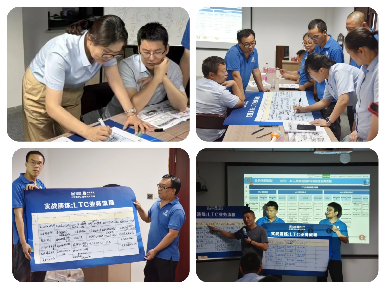 值得一提的是第一天晚上的实战演练环节,杨晓波老师先讲LTC流程的底层逻辑,再选出三位小组长,带领小组成员学以致用,现场氛围热烈,积极研讨与共创,终于输出1.0版本的LTC流程。老师们一一做点评,虽然还有些许不完美,却也值得称赞,未来希望在此基础上,小伙伴们不断输出更为契合、更为完善的属于东政的LTC业务流程,统一语言,提高效率。